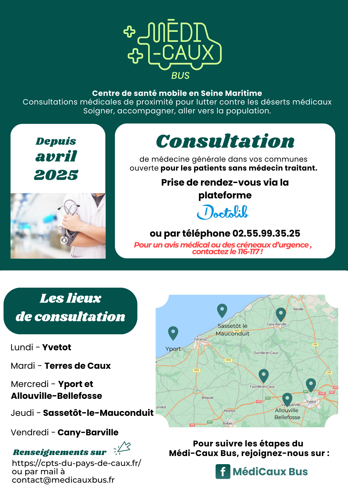 Retrouvez leurs informations sur : https://cpts-du-pays-de-caux.fr/medicaux-bus/